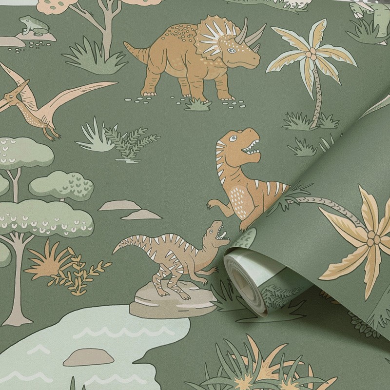 Dins de la col·lecció Adventure Awaits de Holden Decor, el paper pintat Dinosaures et transporta a un univers ple d’història i vida prehistòrica, on les parets prenen protagonisme i es converteixen en una autèntica experiència visual. Inspirat en la fascinació pels dinosaures, aquest disseny aconsegueix un equilibri perfecte entre estil, dinamisme i caràcter decoratiu.