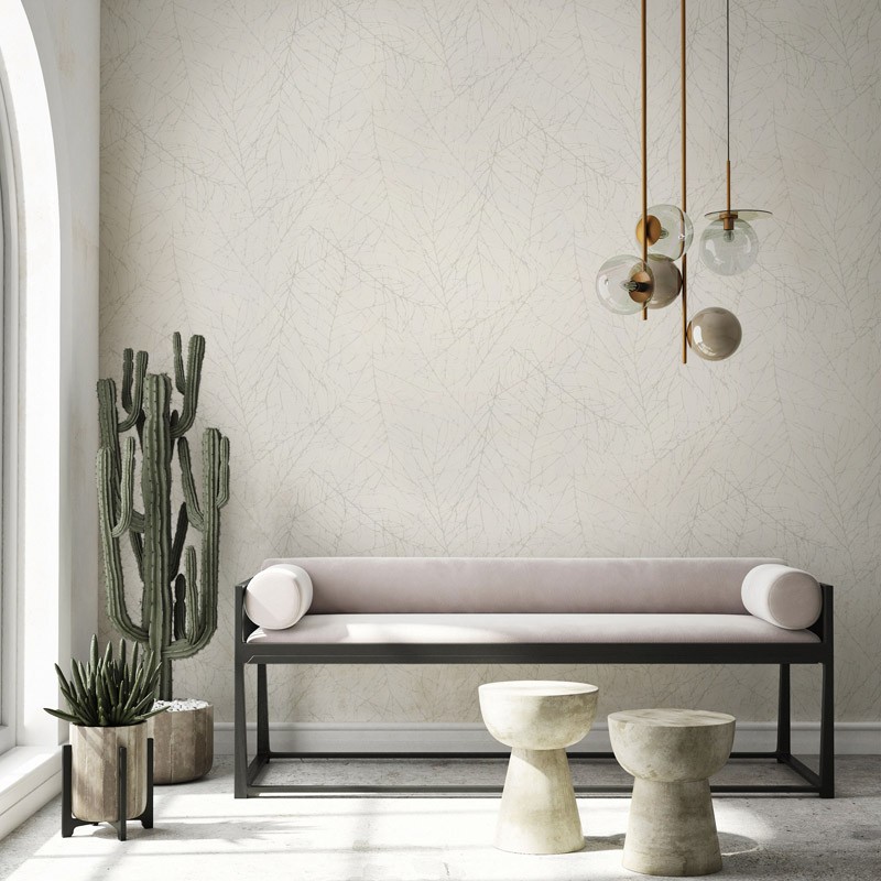 Aquest model en concret és un paper pintat amb branques de color blanc perla amb fons blanc, a més, és un paper que conté un acabat amb textura en el disseny. Si t'agraden els papers pintats d'aquest estil, et recomanem que visitar la categoria paper pintat arbres i branques.