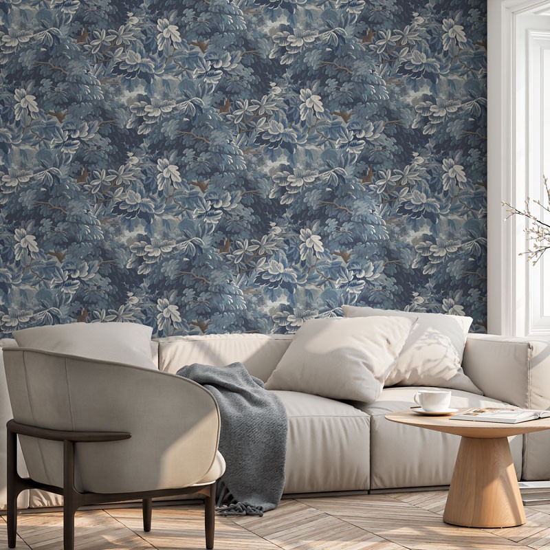 Aquest model de la col·lecció Goya presenta un disseny botànic de fulles i follatge, inspirat en il·lustracions clàssiques de la natura. Les formes vegetals se superposen creant profunditat i moviment, donant lloc a una composició rica i envoltant que vesteix la paret amb naturalitat i elegància. El dibuix transmet una sensació de frondositat serena, sense resultar excessiu ni recarregat.