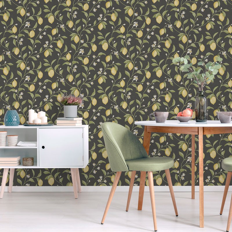 Paper pintat JARDÍ DE LLIMONES FONS NEGRE GRAFIT 3854-5