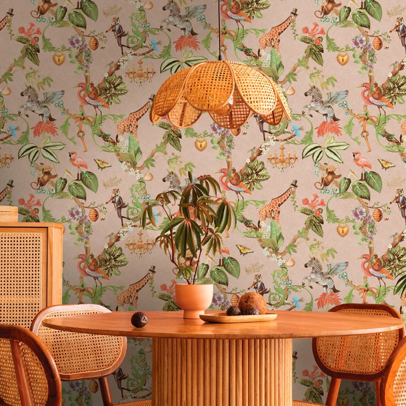 Disponible en diferents combinacions de color, s’adapta tant a ambients càlids i acollidors com a espais més frescos i actuals. És un paper pintat decoratiu pensat per a qui aposta per una decoració atrevida, amb inspiració botànica i exòtica, capaç d’omplir la llar de fantasia, estil i emoció sense renunciar a l’elegància atemporal. Si t'agraden els papers pintats d'aquest estil, et recomanem visitar la nostra categoria paper pintat animals