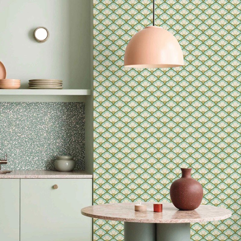 Aquest model en concret és el paper pintat Conchas Retro, que combina l’elegància de l’estil art déco amb un delicat motiu inspirat en petxines que es repeteixen en un patró geomètric equilibrat. El seu disseny corbat i simètric aporta moviment i harmonia visual, evocant l’encant dels interiors clàssics amb un aire actual. Si t'agraden els papers d'aquest estil, et recomanem visitar la categoria paper pintat retro