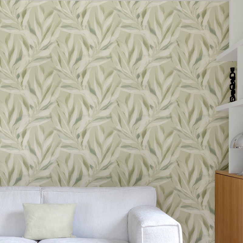 Gracias a la disposición fluida de las hojas, este diseño consigue un efecto envolvente que viste la pared de forma equilibrada, logrando espacios acogedores y serenos. Su estilo atemporal lo convierte en una propuesta versátil, perfecta tanto para salones como dormitorios o zonas de descanso, donde se busca un aire relajante y elegante a la vez.