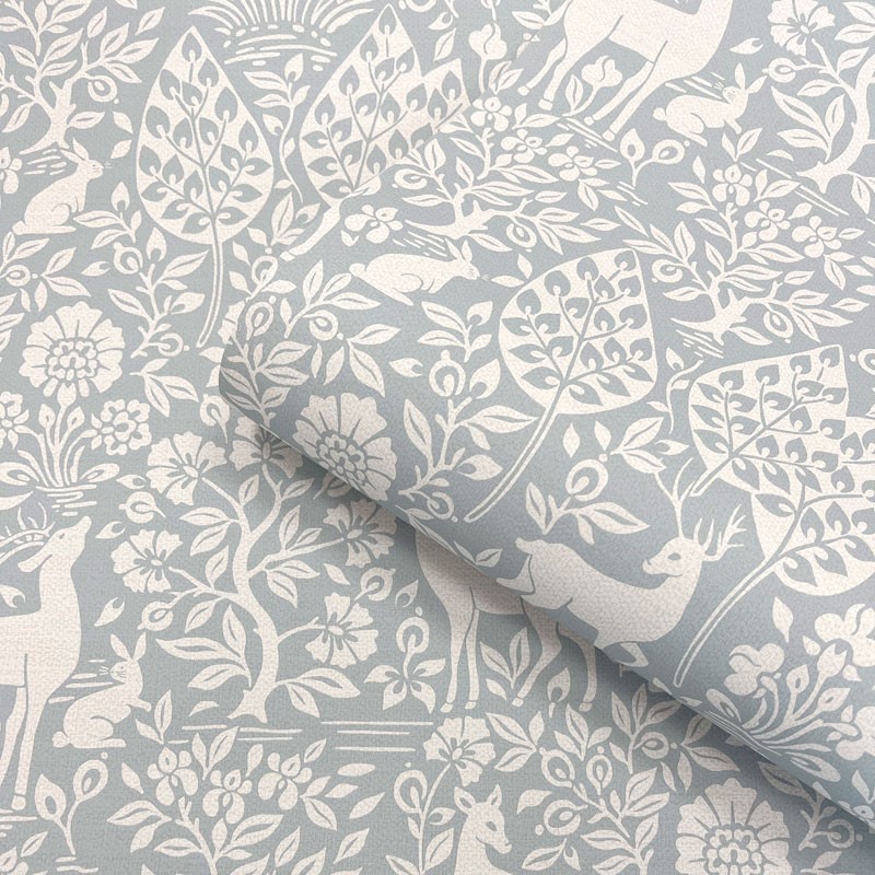 Este papel pintado presenta un encantador bosque ilustrado donde ciervos, conejos, hojas y flores se integran en un diseño armonioso y lleno de detalle. Su estilo decorativo, inspirado en motivos naturales y siluetas artesanales, aporta calma, calidez y un aire muy acogedor a cualquier estancia.