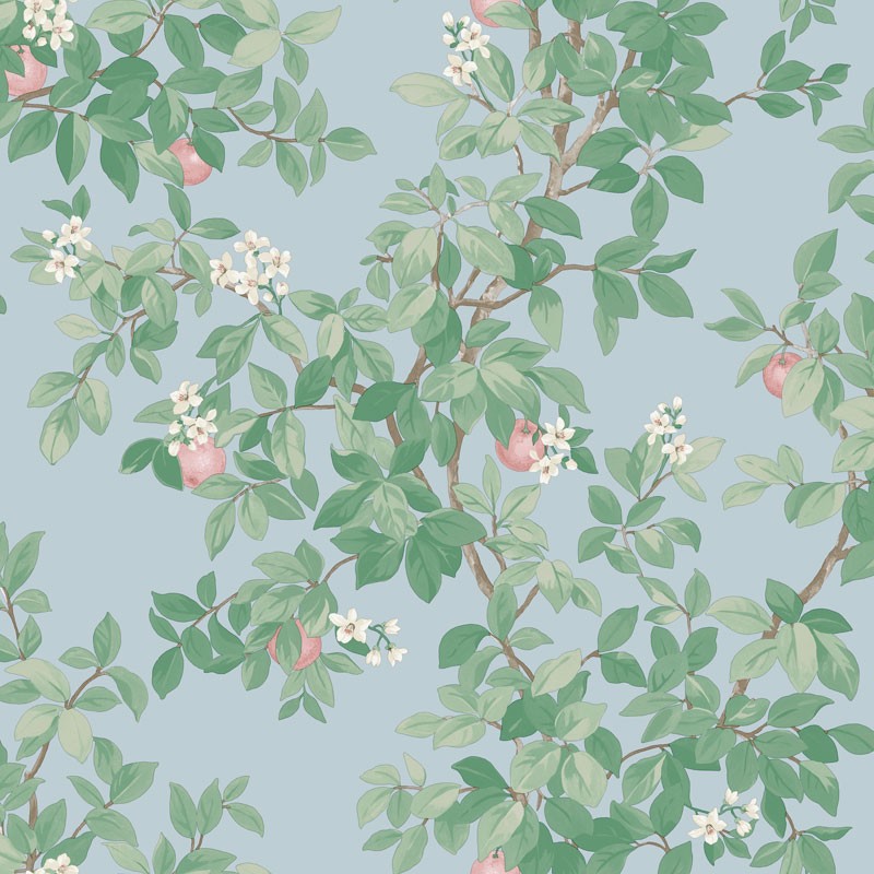 Papel pintado JARDÍN DE NARANJOS VERDE Y AZUL 14243
