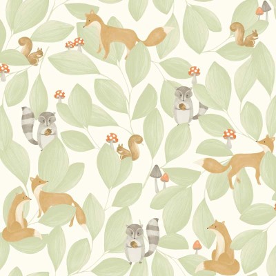 Papel pintado ZORROS Y ARDILLAS VERDE ALMENDRA OUAT_8827_72_53