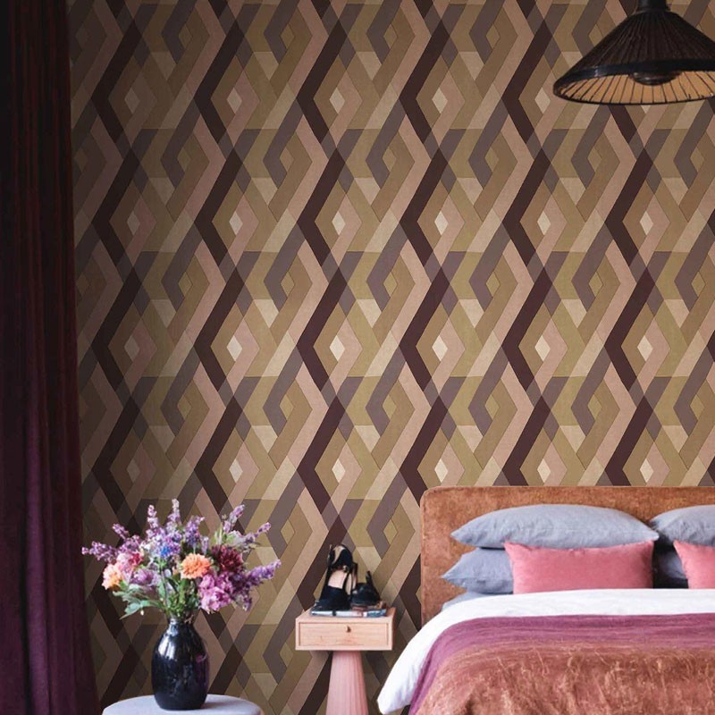 Papel pintado ROMBOS ENTRELAZADOS MARRÓN Y DORADO 2032