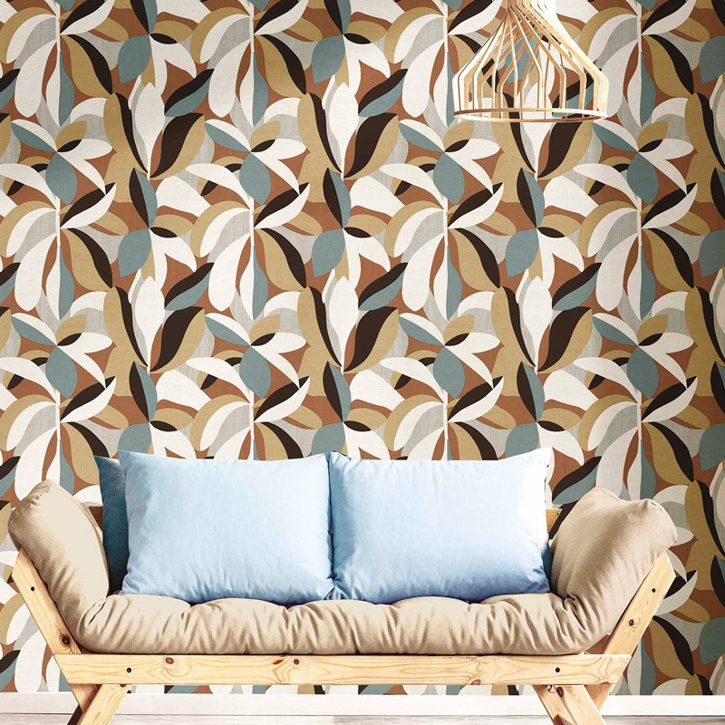 Papel de parede POP ART FOLHAS MARROM E AZUL 30106