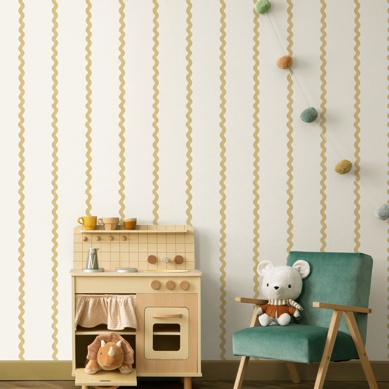 Dentro da coleção Adventure Awaits da Holden Decor, o design Do The Wiggle apresenta uma versão criativa e diferente do clássico padrão às riscas. Em vez de linhas retas, as suas formas onduladas trazem movimento, dinamismo e um toque divertido que enche os espaços de personalidade.