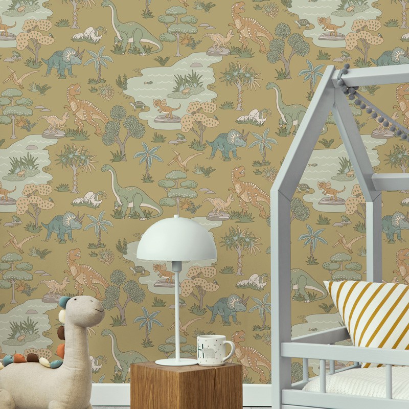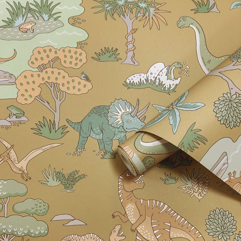 Dentro da coleção Adventure Awaits da Holden Decor, o papel de parede Dinossauros transporta você para um universo cheio de história e vida pré-histórica, onde as paredes ganham protagonismo e se transformam numa autêntica experiência visual. Inspirado na fascinação pelos dinossauros, este design alcança um equilíbrio perfeito entre estilo, dinamismo e caráter decorativo.
