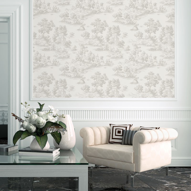 Papel de Parede Toile de Jouy com Cenas Clássicas