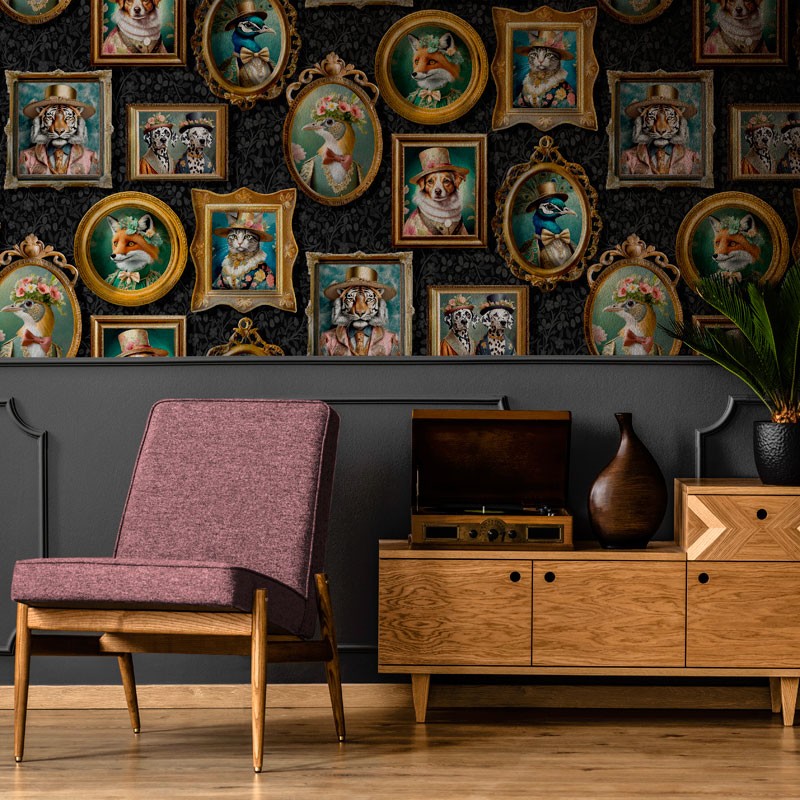 Papel de Parede Galeria Vintage Animal – Retratos em Molduras