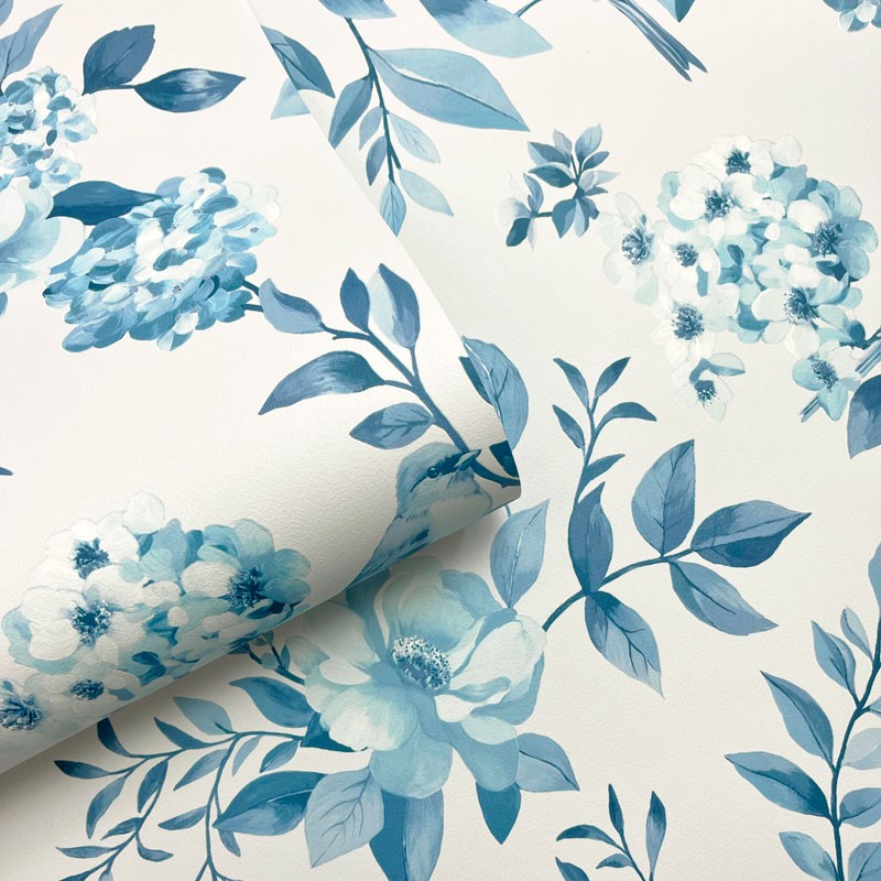 Papel de parede JARDIM FLORAL COM PÁSSAROS AZUL 14193